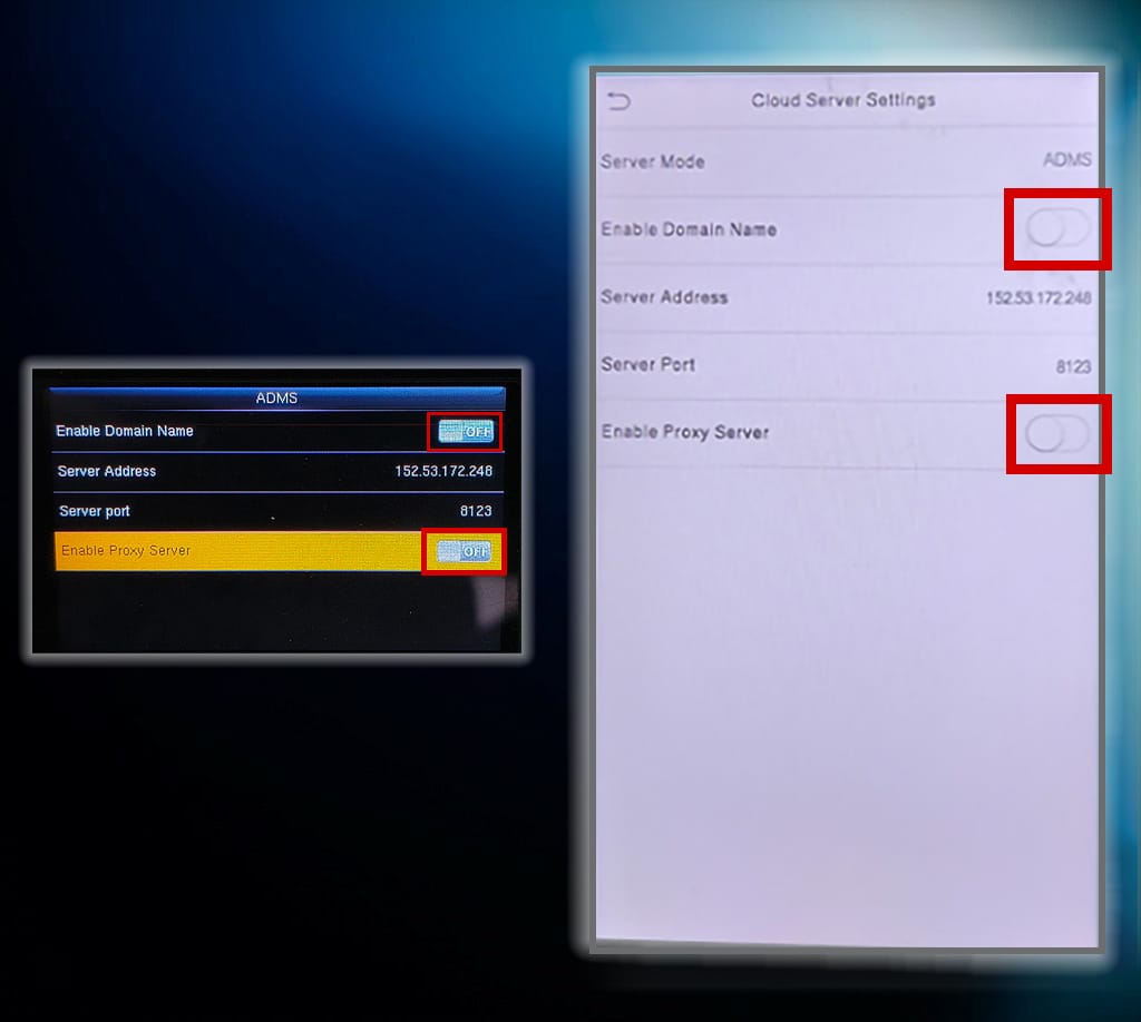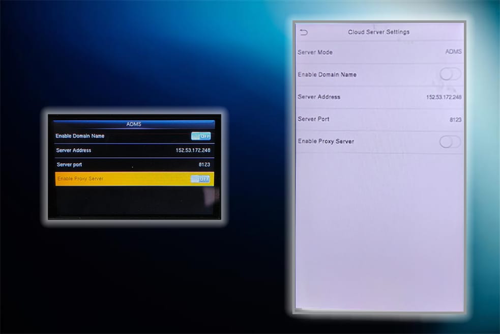 - After selecting Cloud Server Setting or ADMS Setup, the configuration screen will appear as shown in the image below.
